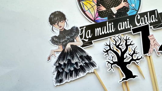 Adaugă un plus de stil și creativitate torturilor tale de Halloween cu decorațiunile din carton de la Candy Boulevard! Aceste accesorii tematice necomestibile sunt perfecte pentru a transforma orice tort într-un punct central spectaculos la petrecerile de Halloween. Fie că alegi personaje iconice precum Wednesday Addams sau elemente clasice precum lilieci și dovleci, decorurile din carton sunt ușor de folosit și oferă un efect vizual de neuitat. Fabricate din materiale de calitate, acestea sunt ideale pentru a crea un tort cu adevărat memorabil, gata să surprindă toți invitații.