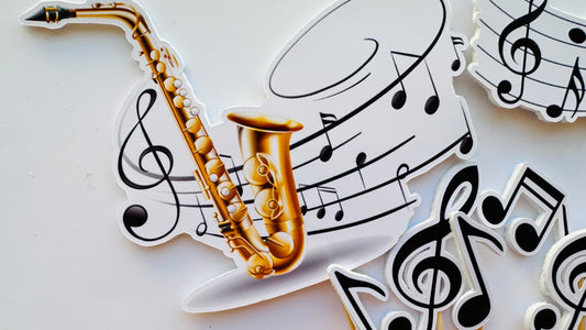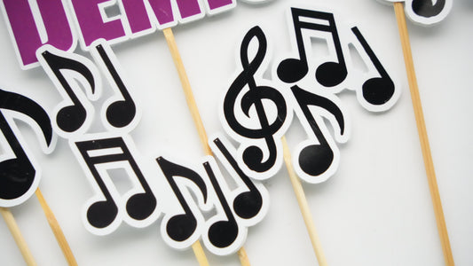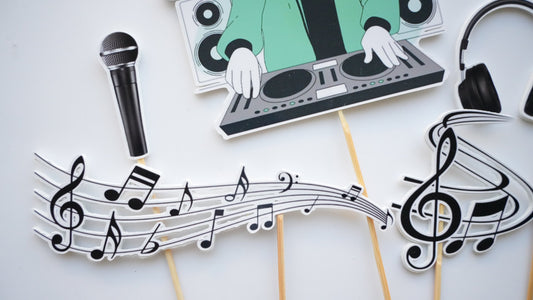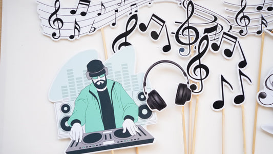 Decoratiuni tematice, cu instrumente si note muzicale.