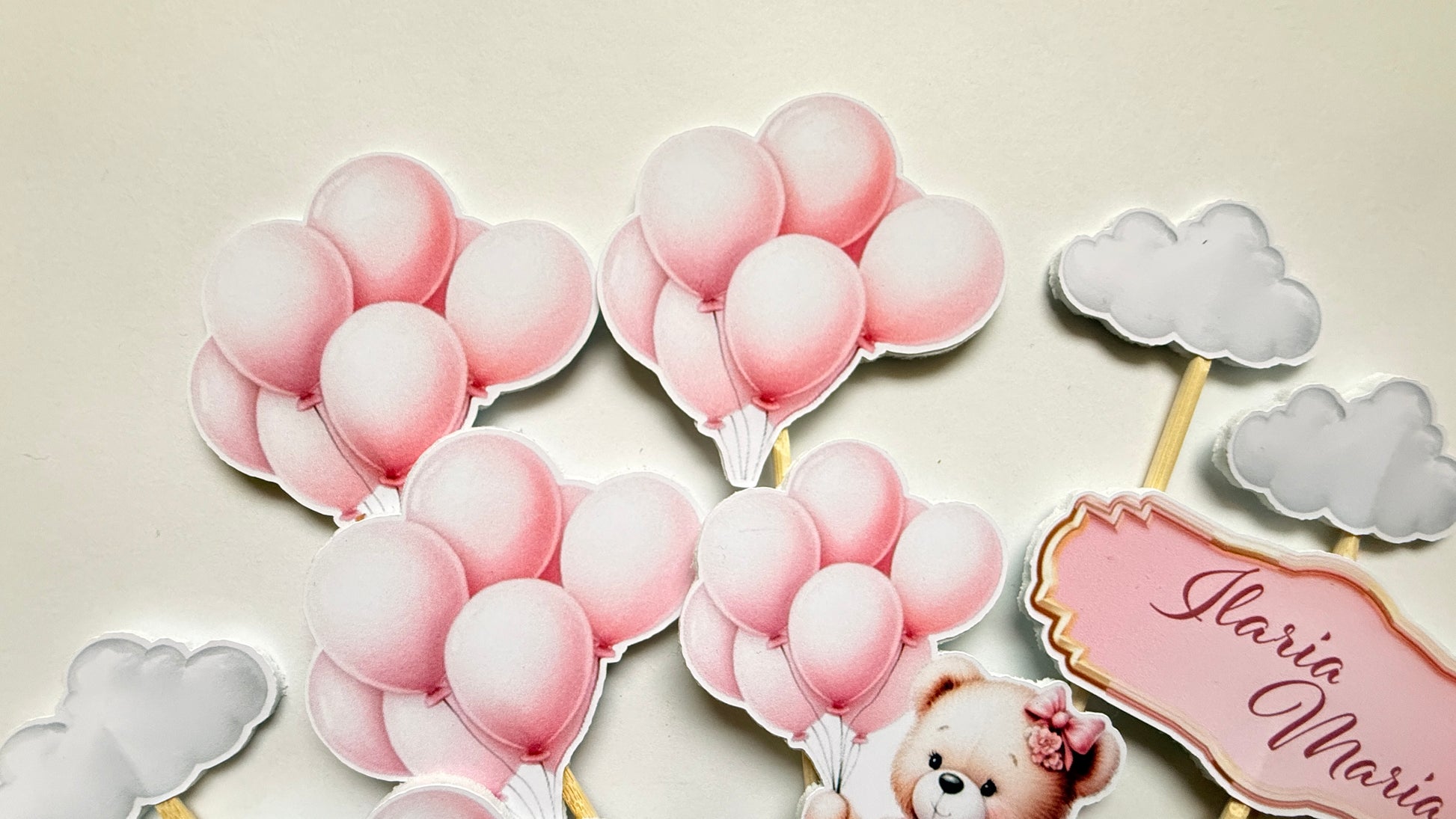 Realizat din carton de calitate, cu imprimeu clar și culori calde, acest set este ușor de folosit și se potrivește armonios pe torturi, candy bar-uri sau mese festive. O soluție simplă și de efect pentru un decor adorabil, fără personalizare.