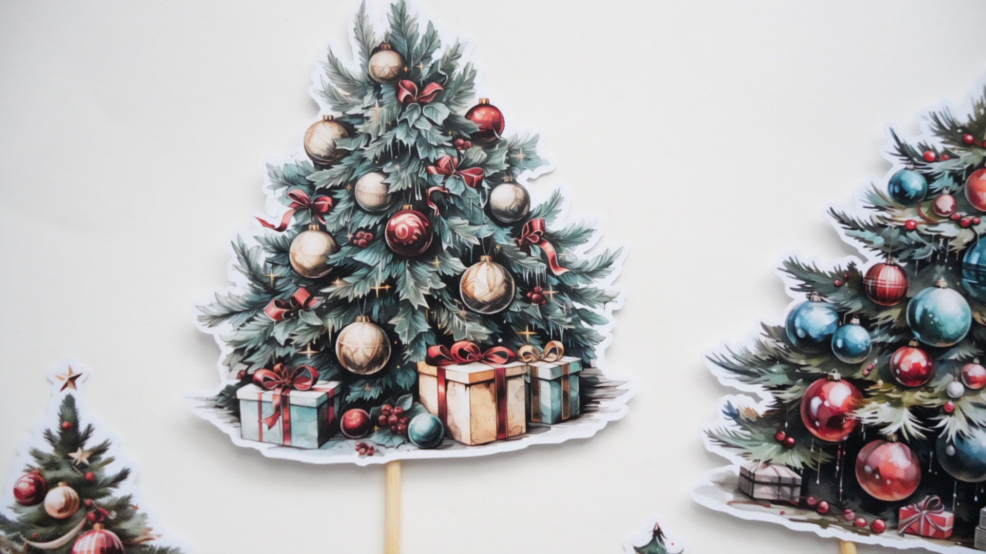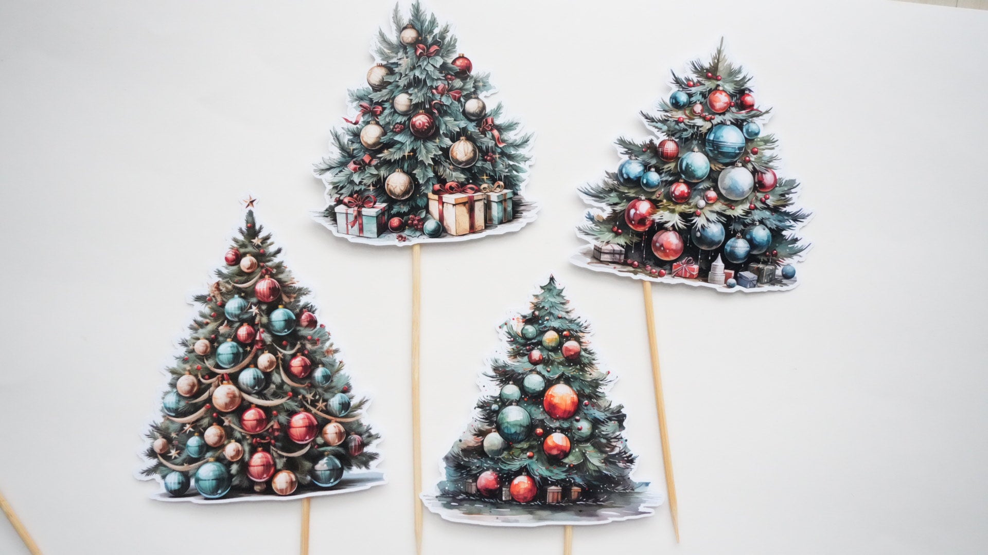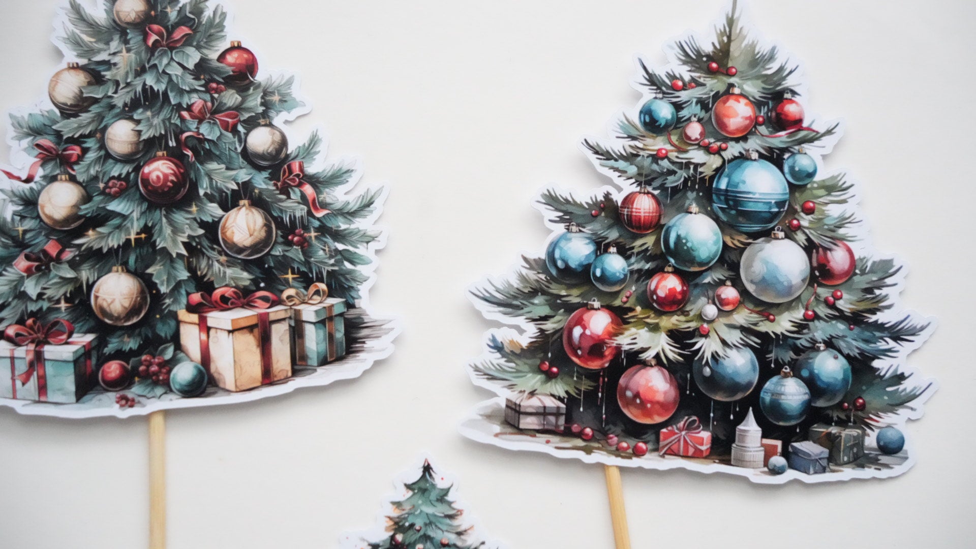 Decorațiuni pentru tort în formă de pomi de Crăciun, realizate din carton rezistent, perfecte pentru a completa orice tematică de sărbători. Designul festiv aduce un plus de magie deserturilor, iar selecția atentă oferită de Candy Boulevard Cluj garantează un decor de impact pentru torturi, prăjituri sau candy bar-uri.