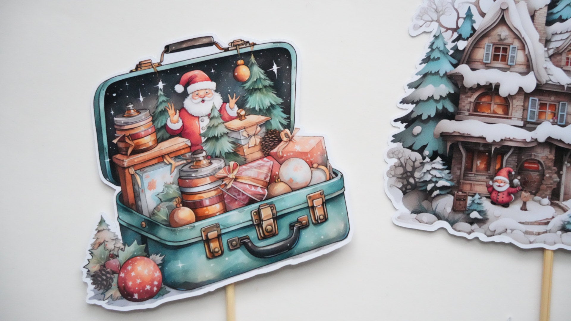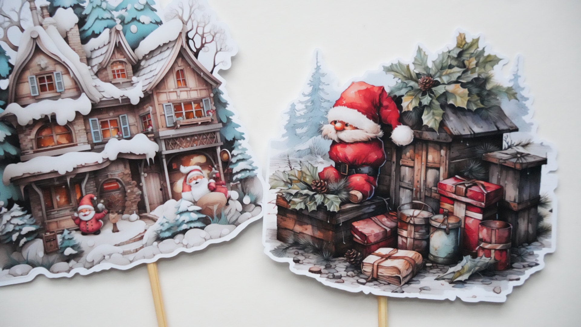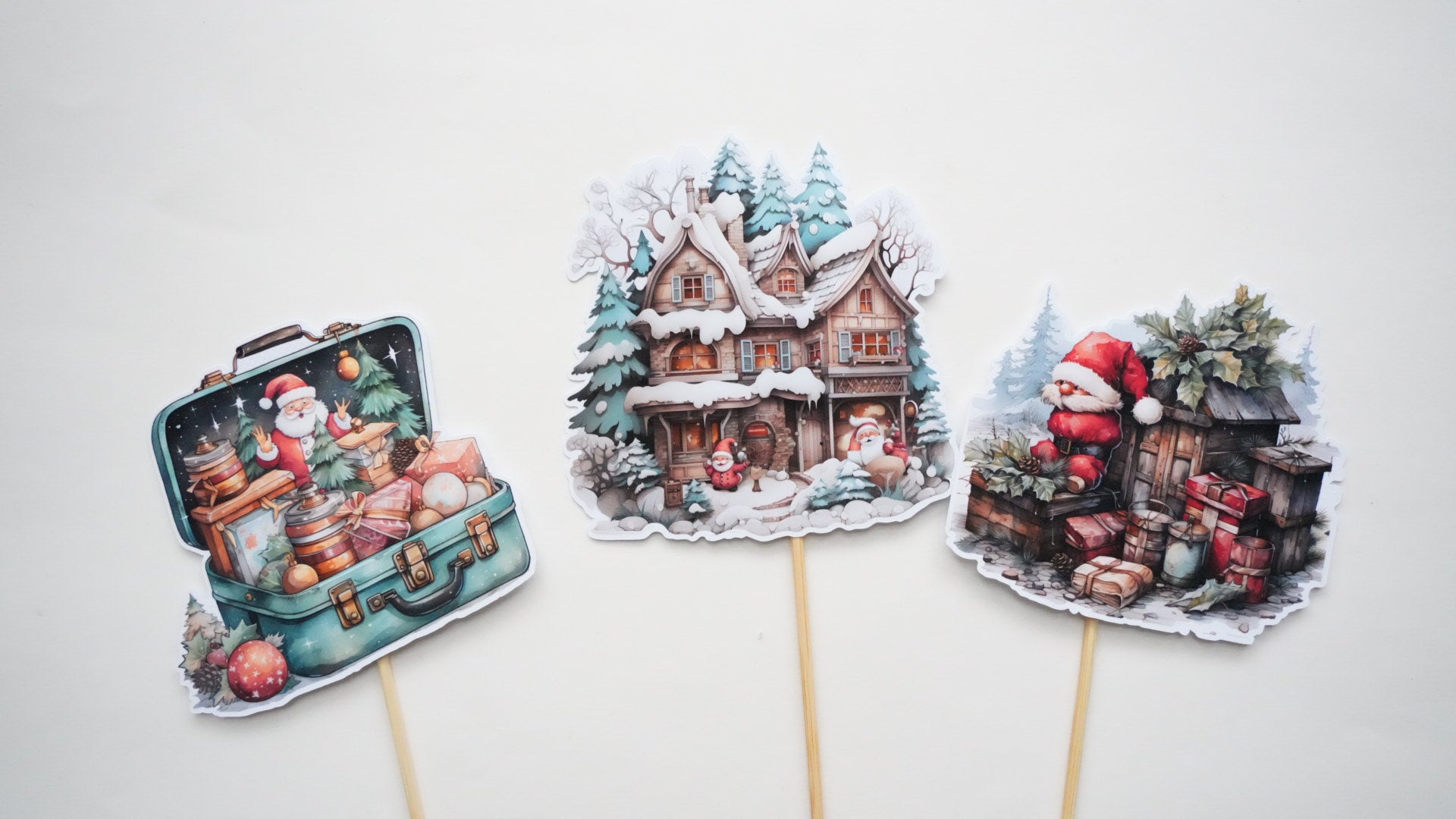 Decorațiuni pentru tort cu tematică de Crăciun, inspirate din lumea jucăriilor clasice. Realizate din carton de calitate și imprimeuri festive, aceste elemente aduc un aer vesel, colorat și plin de magie deserturilor de sărbători. Perfecte pentru torturi, prăjituri și candy bar-uri, oferind un decor atractiv și memorabil.