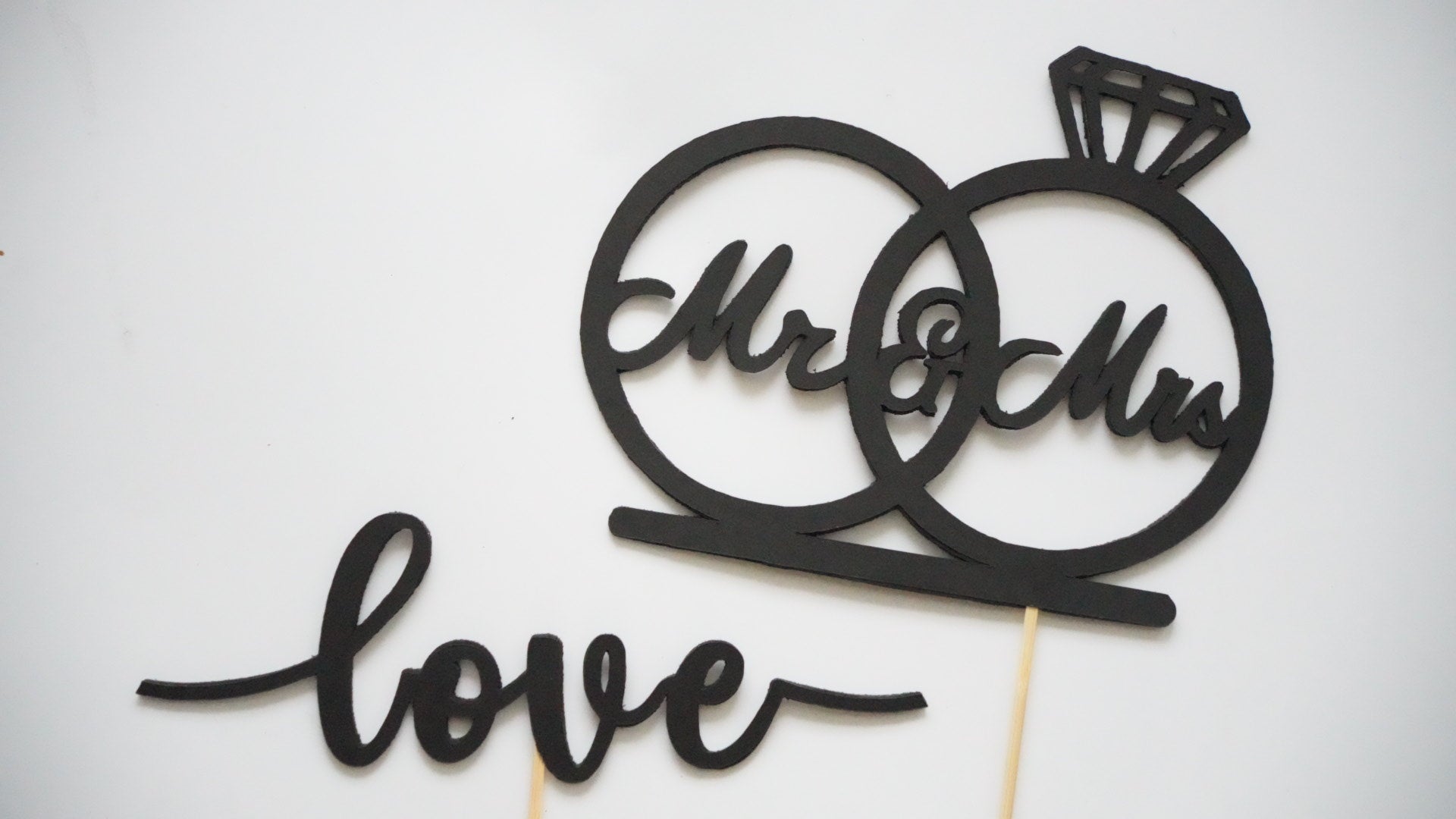 Decoratiuni realizate din carton pentru photobooth, tematica nunta.